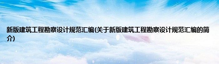 本文关于新版建筑工程勘察设计规范汇编的简介就讲解完毕,希望对大家有所帮助。