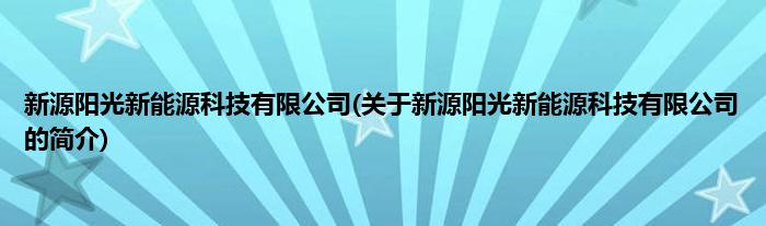 大家好,新源阳光新能源科技有限公司,关于新源阳光新能源科技有限公司的简介很多人还不知道,现在让我们一起来看看吧!