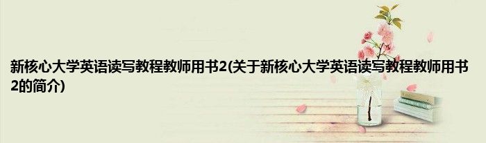 本文关于新核心大学英语读写教程教师用书2的简介就讲解完毕,希望对大家有所帮助。