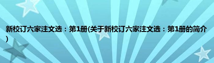 本文关于新校订六家注文选:第1册的简介就讲解完毕,希望对大家有所帮助。