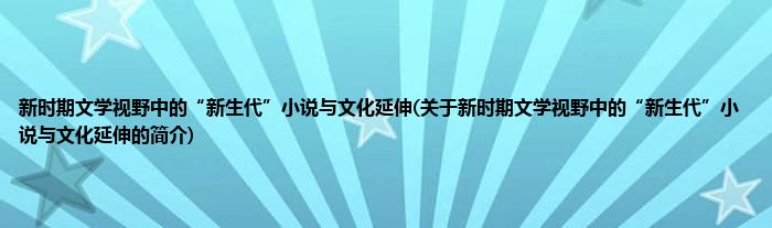 大家好,新时期文学视野中的“新生代”小说与文化延伸,关于新时期文学视野中的“新生代”小说与文化延伸的简介很多人还不知道,现在让我们一起来看看吧!