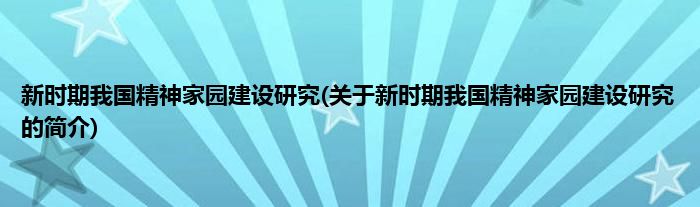 本文关于新时期我国精神家园建设研究的简介就讲解完毕,希望对大家有所帮助。