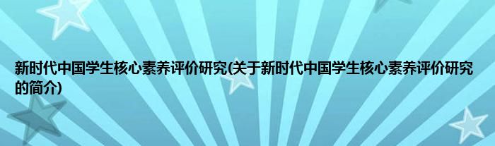本文关于新时代中国学生核心素养评价研究的简介就讲解完毕,希望对大家有所帮助。