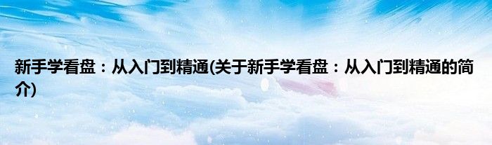 大家好,新手学看盘:从入门到精通,关于新手学看盘:从入门到精通的简介很多人还不知道,现在让我们一起来看看吧!