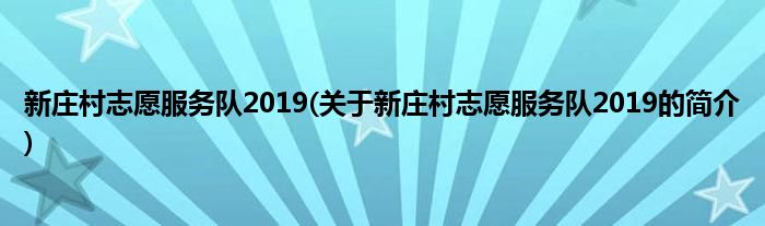 本文关于新庄村志愿服务队2019的简介就讲解完毕,希望对大家有所帮助。