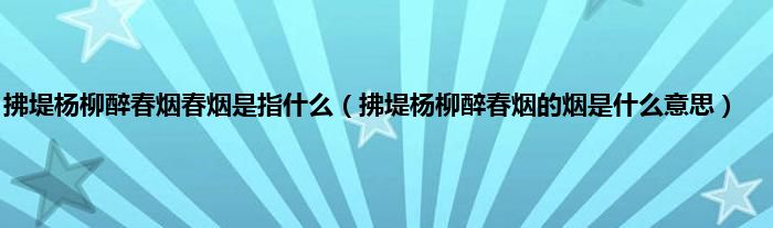 大家好,精选小编来为大家解答以上问题。拂堤杨柳醉春烟春烟是指什么,拂堤杨柳醉春烟的烟是什么意思很多人还不知道,现在让我们一起来看看吧!
