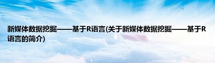 大家好,新媒体数据挖掘——基于R语言,关于新媒体数据挖掘——基于R语言的简介很多人还不知道,现在让我们一起来看看吧!
