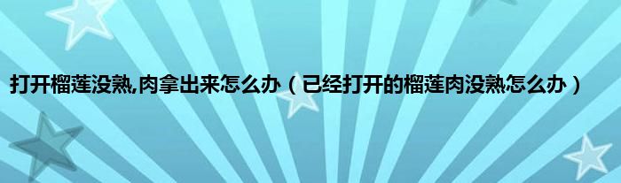 大家好,小科来为大家解答以上问题。打开榴莲没熟,肉拿出来怎么办,已经打开的榴莲肉没熟怎么办很多人还不知道,现在让我们一起来看看吧!