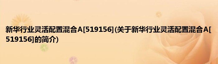 本文关于新华行业灵活配置混合A[519156]的简介就讲解完毕,希望对大家有所帮助。
