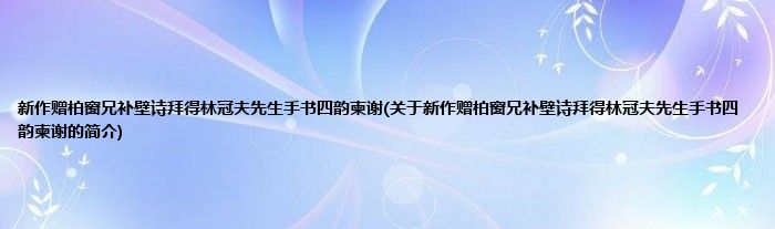 本文关于新作赠柏窗兄补壁诗拜得林冠夫先生手书四韵柬谢的简介就讲解完毕,希望对大家有所帮助。