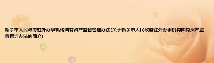 大家好,新余市人民政府驻外办事机构国有资产监督管理办法,关于新余市人民政府驻外办事机构国有资产监督管理办法的简介很多人还不知道,现在让我们一起来看看吧!
