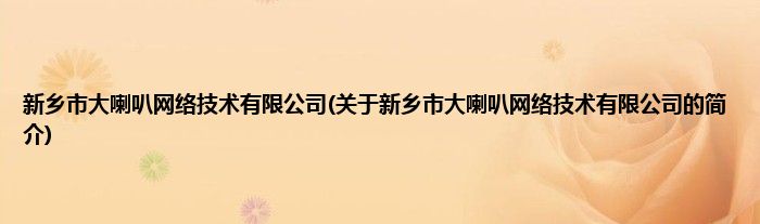 大家好,新乡市大喇叭网络技术有限公司,关于新乡市大喇叭网络技术有限公司的简介很多人还不知道,现在让我们一起来看看吧!