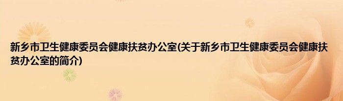 本文关于新乡市卫生健康委员会健康扶贫办公室的简介就讲解完毕,希望对大家有所帮助。