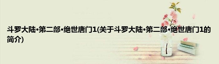 本文关于斗罗大陆·第二部·绝世唐门1的简介就讲解完毕,希望对大家有所帮助。