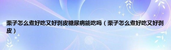 大家好,小科来为大家解答以上问题。栗子怎么煮好吃又好剥皮糖尿病能吃吗,栗子怎么煮好吃又好剥皮很多人还不知道,现在让我们一起来看看吧!