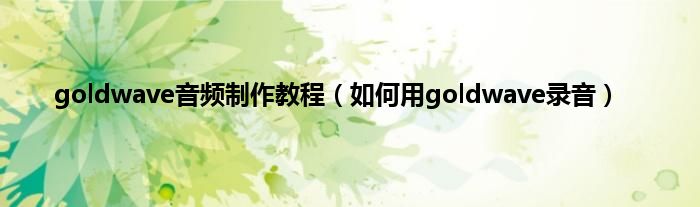 大家好,精选小编来为大家解答以上问题。goldwave音频制作教程,如何用goldwave录音很多人还不知道,现在让我们一起来看看吧!