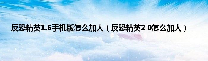大家好,精选小编来为大家解答以上问题。反恐精英1.6手机版怎么加人,反恐精英2 0怎么加人很多人还不知道,现在让我们一起来看看吧!