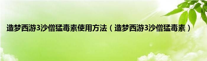 大家好,精选小编来为大家解答以上问题。造梦西游3沙僧猛毒素使用方法,造梦西游3沙僧猛毒素很多人还不知道,现在让我们一起来看看吧!