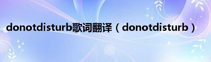 大家好,精选小编来为大家解答以上问题。donotdisturb歌词翻译,donotdisturb很多人还不知道,现在让我们一起来看看吧!