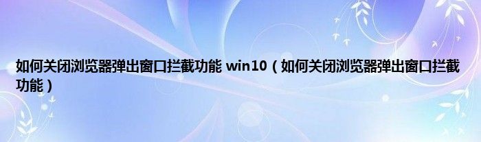 大家好,精选小编来为大家解答以上问题。如何关闭浏览器弹出窗口拦截功能 win10,如何关闭浏览器弹出窗口拦截功能很多人还不知道,现在让我们一起来看看吧!
