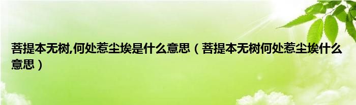 大家好,小常来为大家解答以上问题。菩提本无树,何处惹尘埃是什么意思,菩提本无树何处惹尘埃什么意思很多人还不知道,现在让我们一起来看看吧!