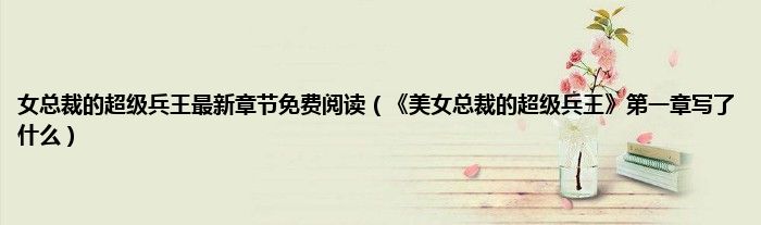 大家好,小常来为大家解答以上问题。女总裁的超级兵王最新章节免费阅读,《美女总裁的超级兵王》第一章写了什么很多人还不知道,现在让我们一起来看看吧!