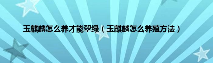 大家好,小常来为大家解答以上问题。玉麒麟怎么养才能翠绿,玉麒麟怎么养殖方法很多人还不知道,现在让我们一起来看看吧!