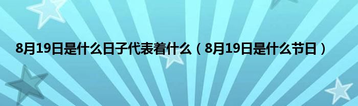 大家好,小常来为大家解答以上问题。8月19日是什么日子代表着什么,8月19日是什么节日很多人还不知道,现在让我们一起来看看吧!