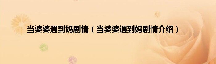 大家好,小常来为大家解答以上问题。当婆婆遇到妈剧情,当婆婆遇到妈剧情介绍很多人还不知道,现在让我们一起来看看吧!