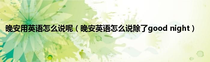 大家好,小常来为大家解答以上问题。晚安用英语怎么说呢,晚安英语怎么说除了good night很多人还不知道,现在让我们一起来看看吧!