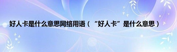 大家好,小常来为大家解答以上问题。好人卡是什么意思网络用语,“好人卡”是什么意思很多人还不知道,现在让我们一起来看看吧!
