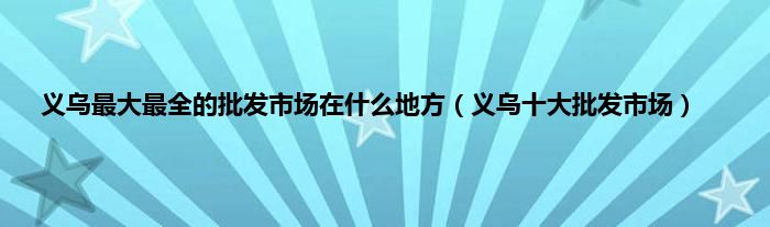 大家好,小常来为大家解答以上问题。义乌最大最全的批发市场在什么地方,义乌十大批发市场很多人还不知道,现在让我们一起来看看吧!