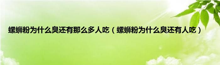 大家好,小科来为大家解答以上问题。螺蛳粉为什么臭还有那么多人吃,螺蛳粉为什么臭还有人吃很多人还不知道,现在让我们一起来看看吧!