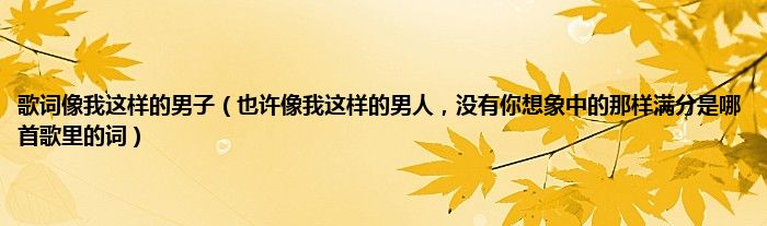 大家好,小常来为大家解答以上问题。歌词像我这样的男子,也许像我这样的男人,没有你想象中的那样满分是哪首歌里的词很多人还不知道,现在让我们一起来看看吧!