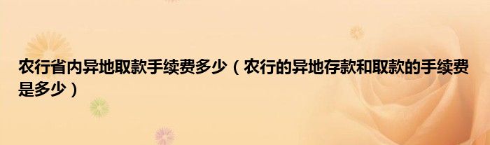 大家好,小常来为大家解答以上问题。农行省内异地取款手续费多少,农行的异地存款和取款的手续费是多少很多人还不知道,现在让我们一起来看看吧!