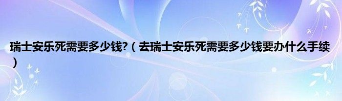 瑞士安乐死需要多少钱?(去瑞士安乐死需要多少钱要办什么手续)