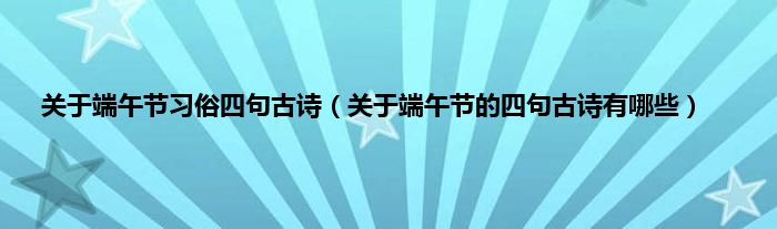 大家好,小常来为大家解答以上问题。关于端午节习俗四句古诗,关于端午节的四句古诗有哪些很多人还不知道,现在让我们一起来看看吧!
