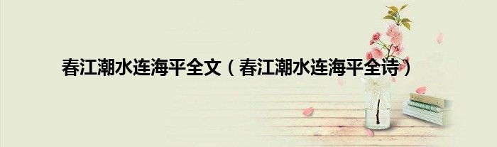 大家好,小常来为大家解答以上问题。春江潮水连海平全文,春江潮水连海平全诗很多人还不知道,现在让我们一起来看看吧!