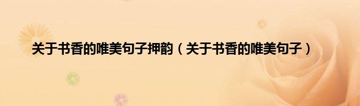 大家好,小常来为大家解答以上问题。关于书香的唯美句子押韵,关于书香的唯美句子很多人还不知道,现在让我们一起来看看吧!