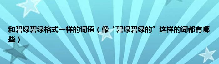 大家好,小常来为大家解答以上问题。和碧绿碧绿格式一样的词语,像“碧绿碧绿的”这样的词都有哪些很多人还不知道,现在让我们一起来看看吧!