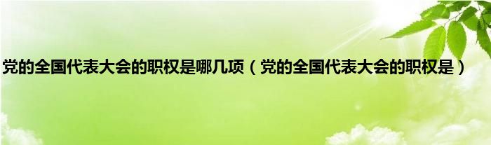 1、党的全国代表大会的职权是:听取和审查中央委员会的报告;听取和审査中央纪律检査委员会的报告;讨论并决定党的重大问题;修改党的章程;选举中央委员会;选举中央纪律检査委员会。