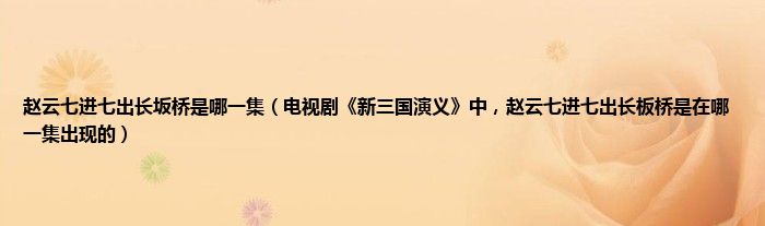 大家好,小常来为大家解答以上问题。赵云七进七出长坂桥是哪一集,电视剧《新三国演义》中,赵云七进七出长板桥是在哪一集出现的很多人还不知道,现在让我们一起来看看吧!