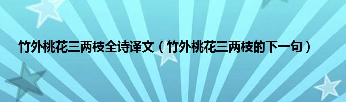 大家好,小常来为大家解答以上问题。竹外桃花三两枝全诗译文,竹外桃花三两枝的下一句很多人还不知道,现在让我们一起来看看吧!