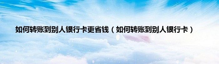 大家好,小常来为大家解答以上问题。如何转账到别人银行卡更省钱,如何转账到别人银行卡很多人还不知道,现在让我们一起来看看吧!