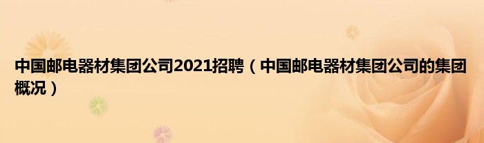 大家好,小常来为大家解答以上问题。中国邮电器材集团公司2021招聘,中国邮电器材集团公司的集团概况很多人还不知道,现在让我们一起来看看吧!