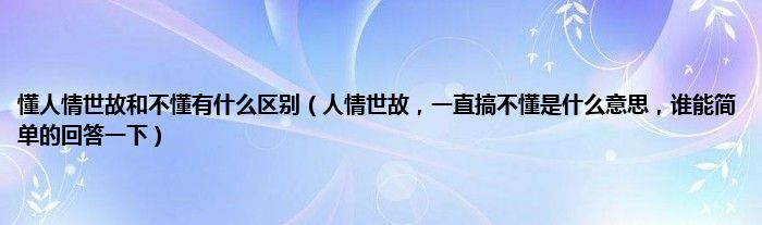大家好,小常来为大家解答以上问题。懂人情世故和不懂有什么区别,人情世故,一直搞不懂是什么意思,谁能简单的回答一下很多人还不知道,现在让我们一起来看看吧!