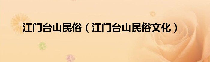 江门台山民俗(江门台山民俗文化)