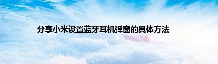 现在大家使用手机的频率越来越频繁,手机也为我们提供了许多的便利,今天小编也来说一下这个分享小米设置蓝牙耳机弹窗的具体方法相关的文章,这个操作其实不复杂,接下来就给大家介绍一下分享小米设置蓝牙耳机弹窗的具体方法,一起来看看吧: