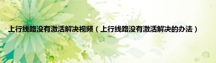 大家好,小常来为大家解答以上问题。上行线路没有激活解决视频,上行线路没有激活解决的办法很多人还不知道,现在让我们一起来看看吧!