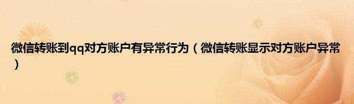 大家好,小常来为大家解答以上问题。微信转账到qq对方账户有异常行为,微信转账显示对方账户异常很多人还不知道,现在让我们一起来看看吧!